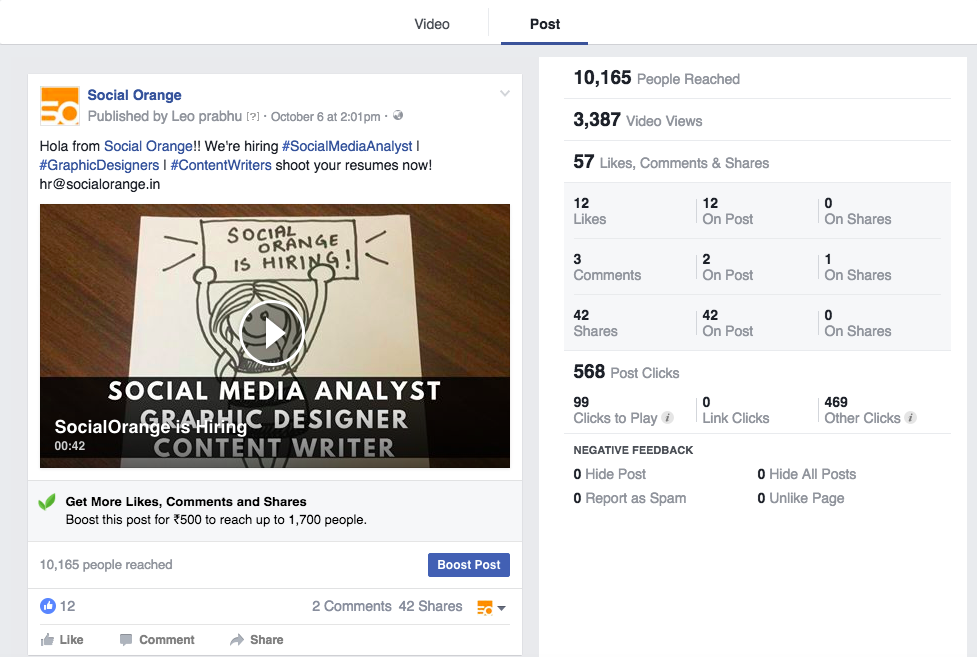 Usually, brands used to take up either a paid Job posting platform or they will try to hire an HR recruitment agency to get things done. But, the brand managers at SocialOrange took this challenge and came up with a Viral Video Campaign for hiring and as usual the metrics were set before going live with the campaign.