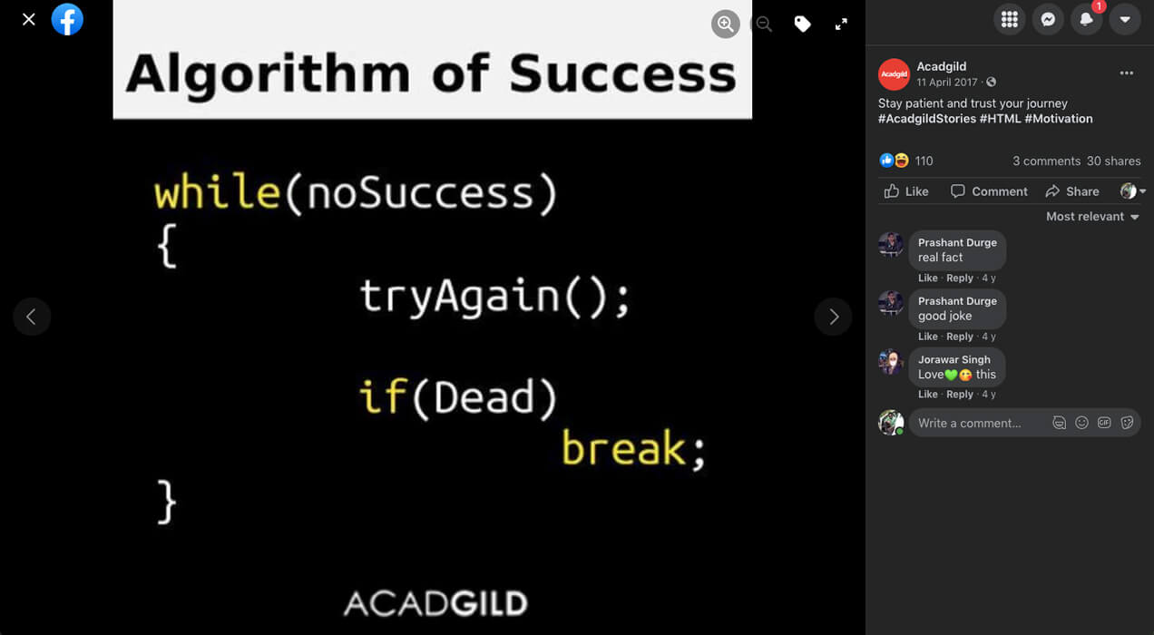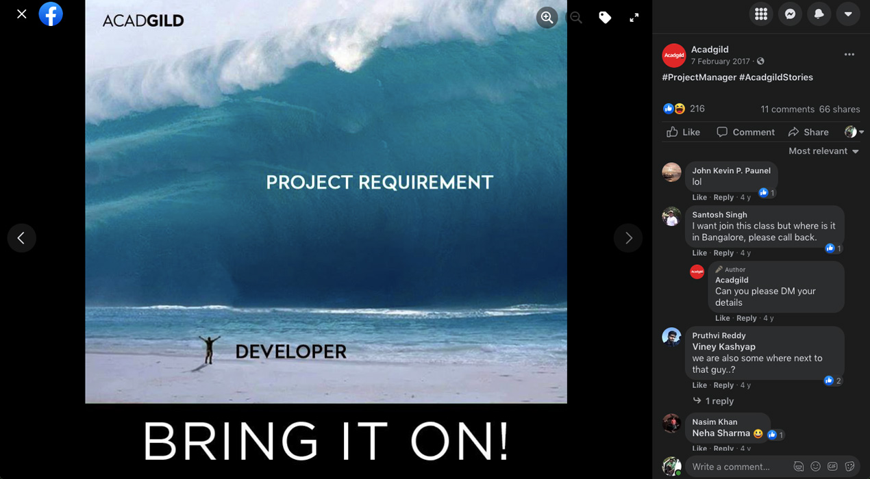 The brand wants to leverage its Facebook followers and increase its organic post reach and engagement. Since Acadgild had a perfect targeted follower base, SocialOrage knew that we could drive the organic reach and engagement by delivering a solid content plan.
