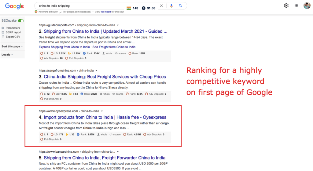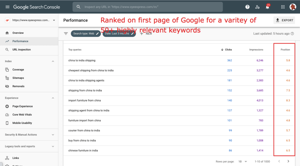 We helped this international logistic brand OyeExpress rank on top of Google for more than 100+ keywords.